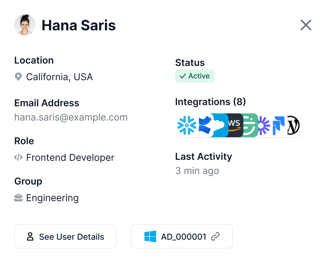 Provision new users across your stack within minutes, and deprovision instantly with no orphaned accounts.
