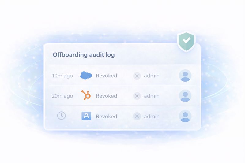 In many compliance contexts, you need proof that departed employees were offboarded predictably and properly. Tello's audit log shows the full trail—when access was revoked, across which apps, and by whom.